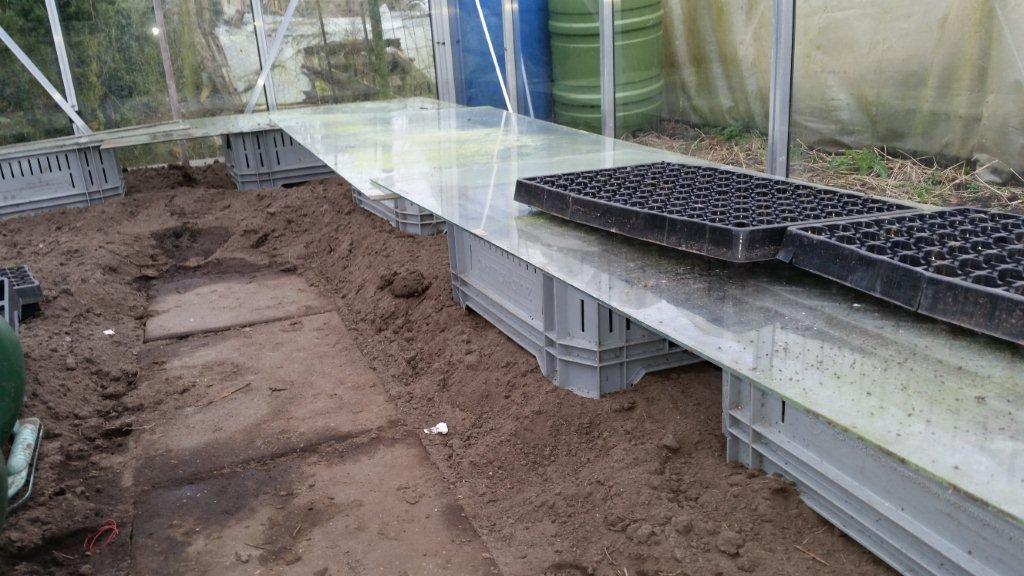 26. Klaar met spitten, de laatste 20m2 omgespit. Ook de platglas kas klaargemaakt om worteltjes en prei te zaaien. Ik heb de tuinbonentray van thuis naar de kas verplaatst, omdat de groene puntjes boven de grond komen en bij minimaal 18 graden schieten de plantjes omhoog en dan krijg van die lange dunne stengels. Met een temperatuur van rond de 4 tot 8 graden krijg je stevige plantjes. Vooral onderaan. Dus ik zet ze vroegtijdig naar de (onverwarmde) kas.
