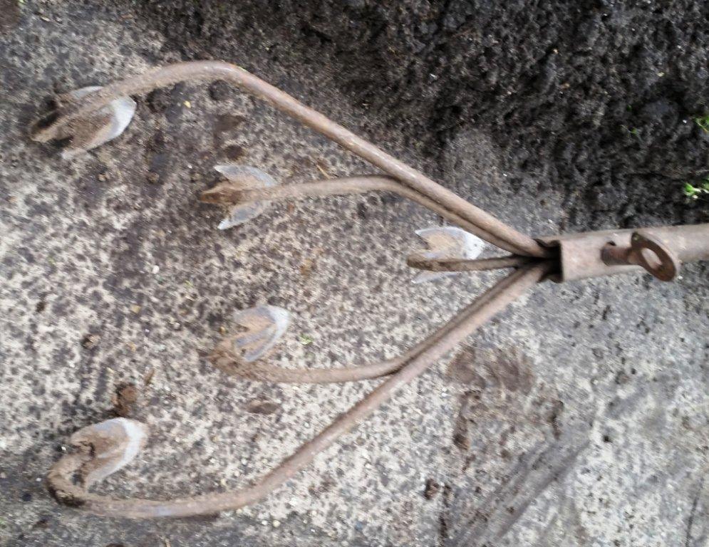 5. 15m2 gespit. Een gedeelte van mijn fruittuin met de 5 tand cultivator, zie foto hieronder, omgetrokken.