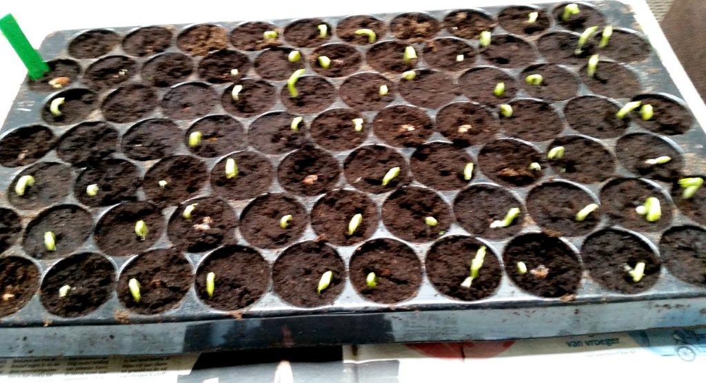 24. 150 gaatjes in mijn prei-tray gezaaid(prei ras : carentan 2). (zie foto) 10m2 gespit.