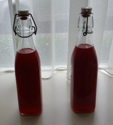 13. 6 potten aardbeienjam gemaakt (zie hierboven). 5 flesjes saus voor over de gele vla of over het ijs.