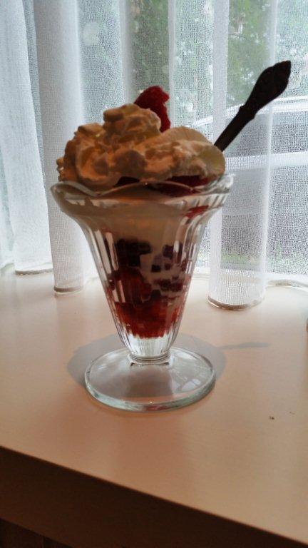 Of aardbeienijs maken met de ijsmachine. Kortom smullen maar....